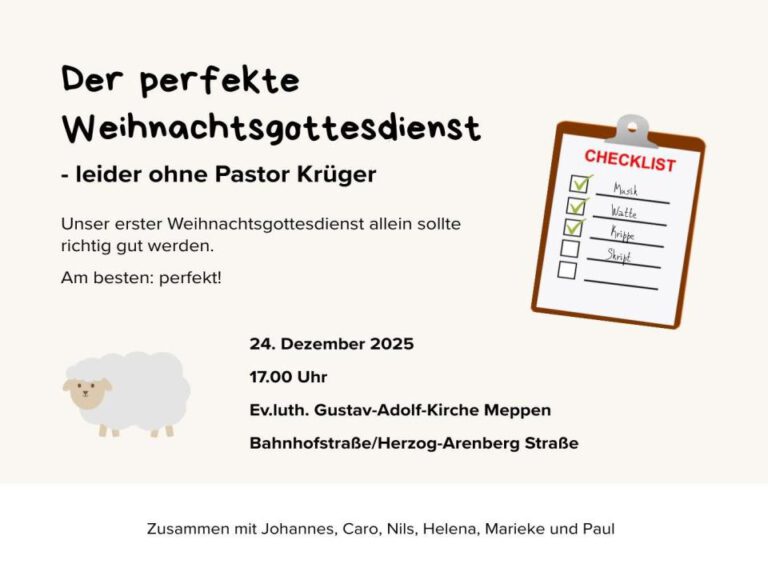 Bis August 2025 war ich Pastor der Ev.-luth. Gustav-Adolf-Kirchengemeinde zu Meppen